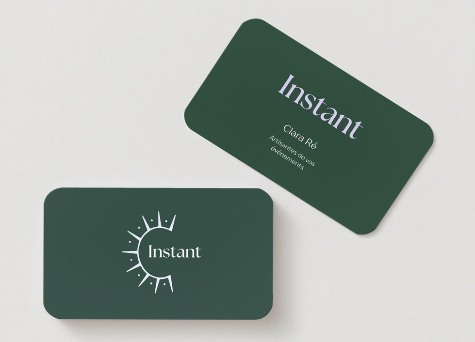 Instant est l’agence événementielle fondée par Clara Ré. Pour elle, chaque événement est une œuvre d’art, unique par nature. Nous avons donc imaginé un logo évoquant à la fois un bijou et la rencontre subtile du soleil et de la lune, symbole de moments singuliers. L’ensemble s’inscrit dans un “C” comme Clara, rappelant que derrière chaque création se trouve la personne qui en est l’origine.